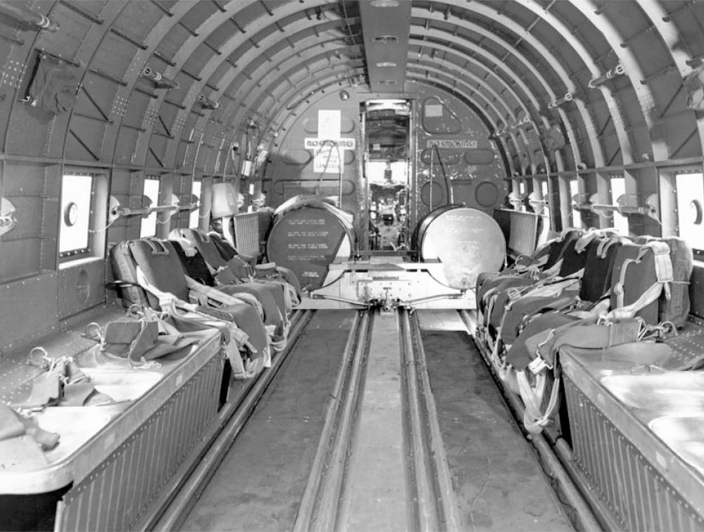 - (right) Interior view of a C-47 (credit: Air Force Historical Research Agency)