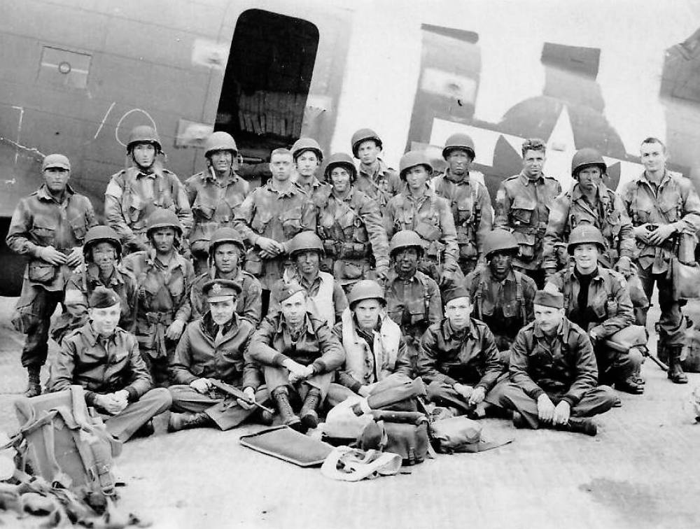 - (left) U.S. Army Pathfinders and USAAF flight crew prior to D-Day in front of a C-47 at RAF North Witham (credit: United States Department of the Army)
