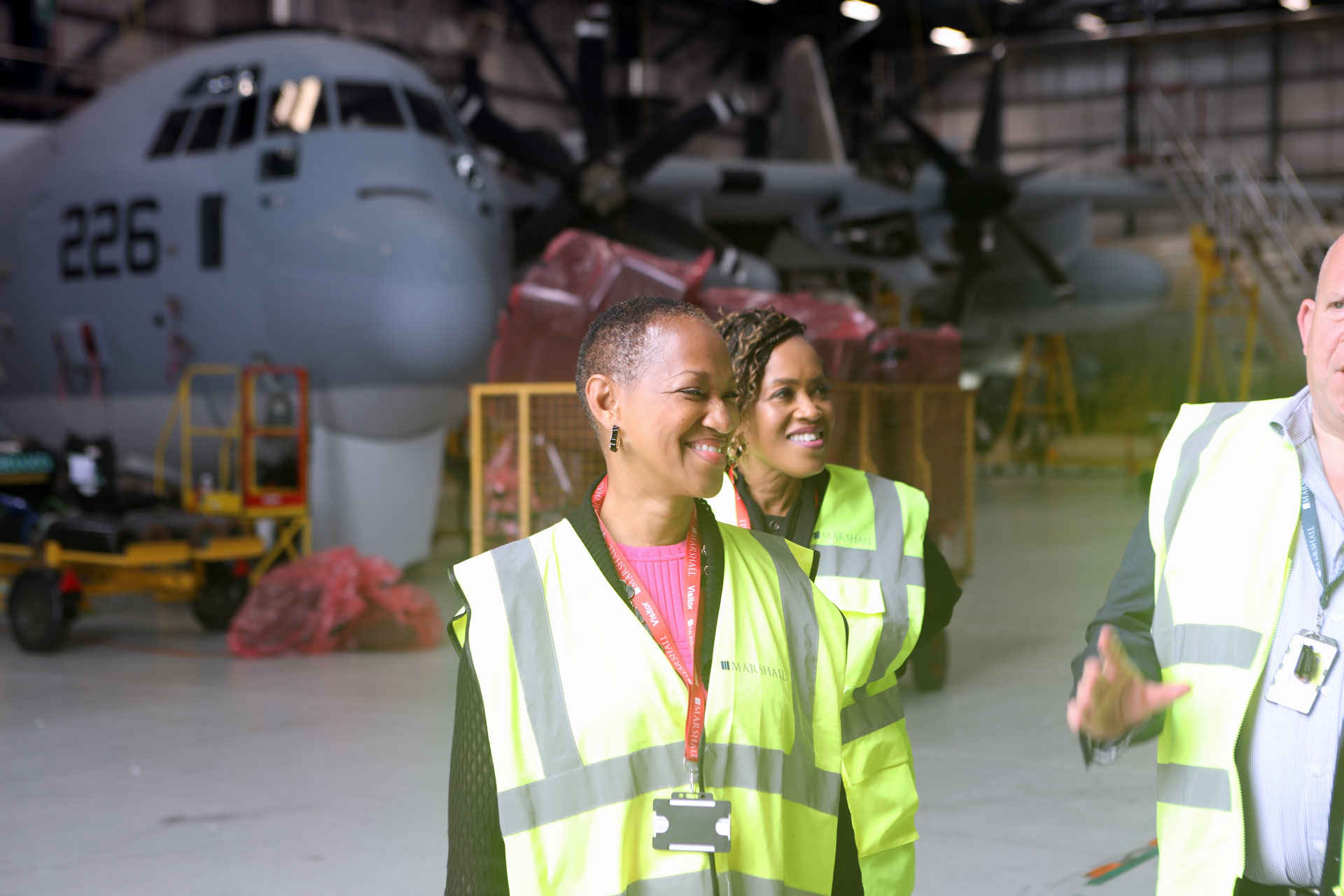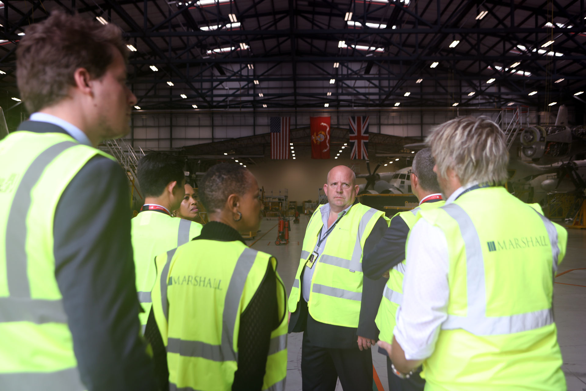 The tour covered a range of Marshall’s aerospace operations, including MRO work on the United States Marine Corps fleet of KC-130J airlifters, and heavy engineering projects such as the removal and replacement of aircraft centre wing boxes.